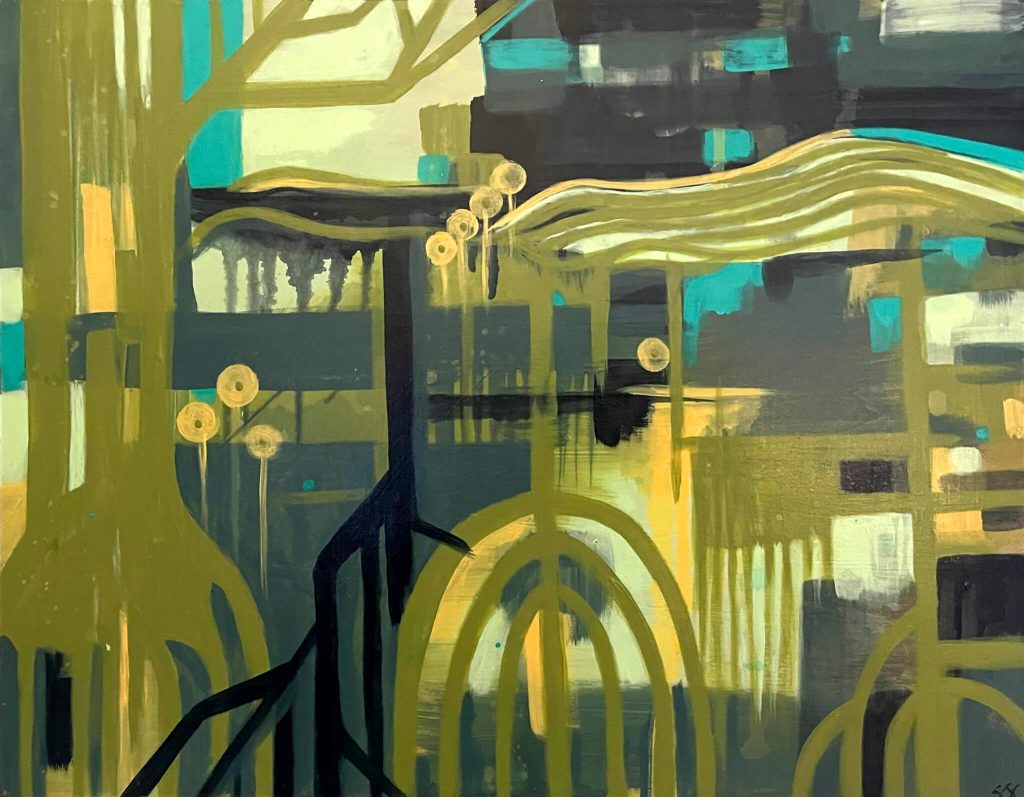 The Flint Hills are an expansive wonder: beautiful skies, miles of low rolling hills, fields of swaying grasses. These wide-open spaces feel like home to me. But there is more than meets the eye. According to the National Park Service, “three quarters of the prairie biomass … is the root system. The visible plants on the landscape are merely the photosynthetic leaves gathering sunlight." This painting is about the expanse beneath the surface: deep, sturdy roots providing a solid, efficient, adaptable foundation for the prairie – the part of the prairie we can’t see but is just as important, just as inspiring.